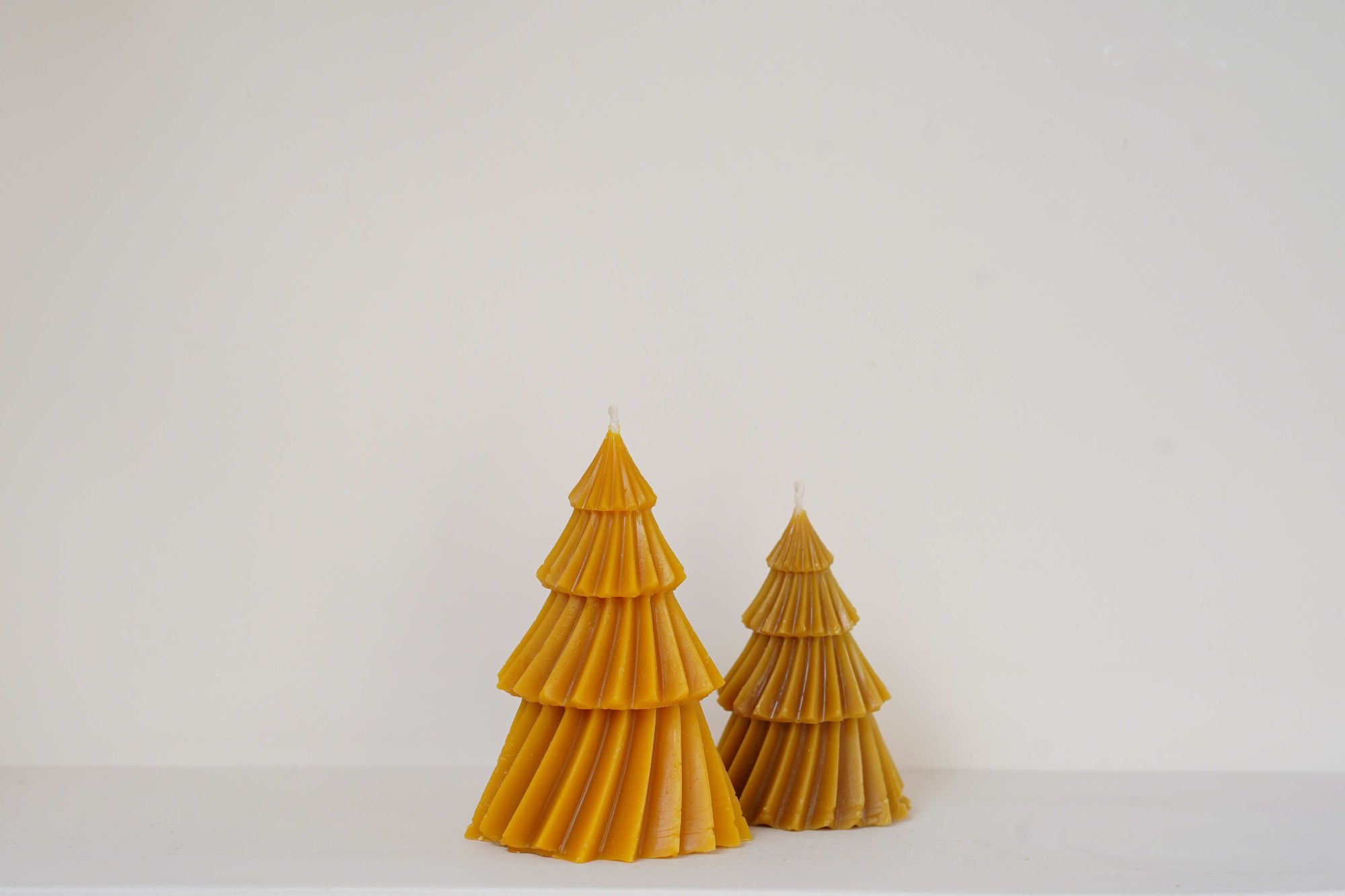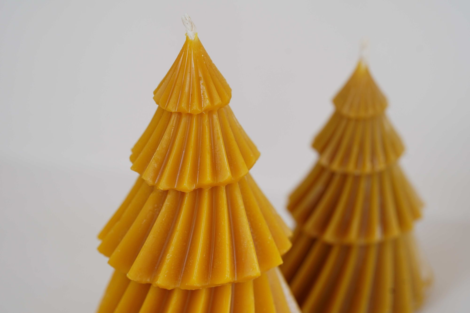 Izrađene od 100% pčelinjeg voska, sveće se dobijaju pažljivim izlivanjem u kalup u obliku jelke, sa slojevitim reljefom koji podseća na ručno pravljene novogodišnje ukrase iz detinjstva. Njihova topla, zlatna nijansa i prirodan miris voska stvaraju prazničnu atmosferu bez veštačkih dodataka.